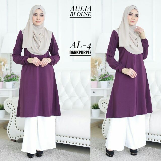 Size XS 5XL Baju Muslimah Aulia Blouse Labuh Long Clothing . Sumber Gambar : shopee.com.my