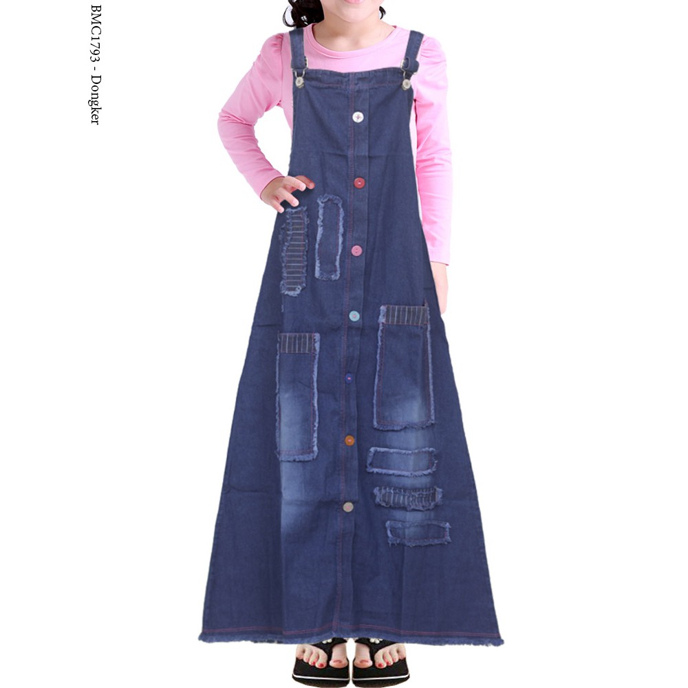 Baju Gamis Anak Overall Bahan Jeans Usia 5 9tahun Terbaru . Sumber Gambar : shopee.co.id