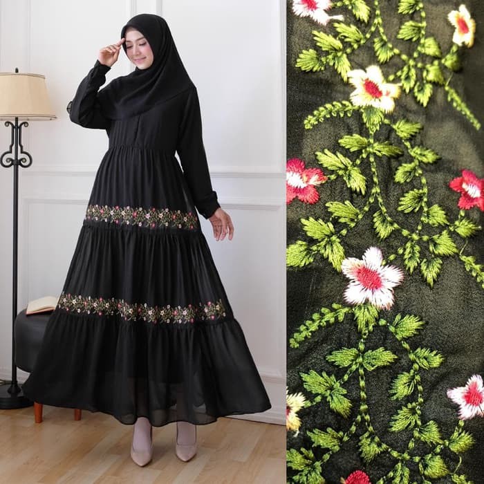 30 Model Baju Gamis Warna Hitam Kombinasi Fashion . Sumber Gambar : pusat-mukena.com